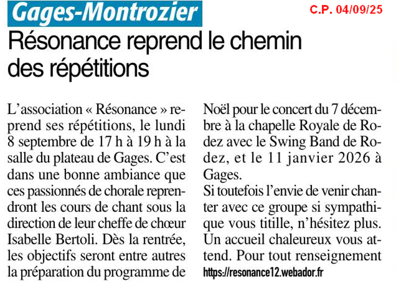 2 juin 25 - Les concerts sont finis mais Résonance est d'ores et déja au travail de préparation de la rentrée et de Noël.