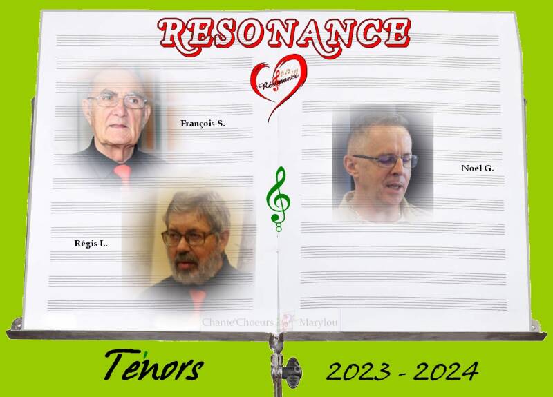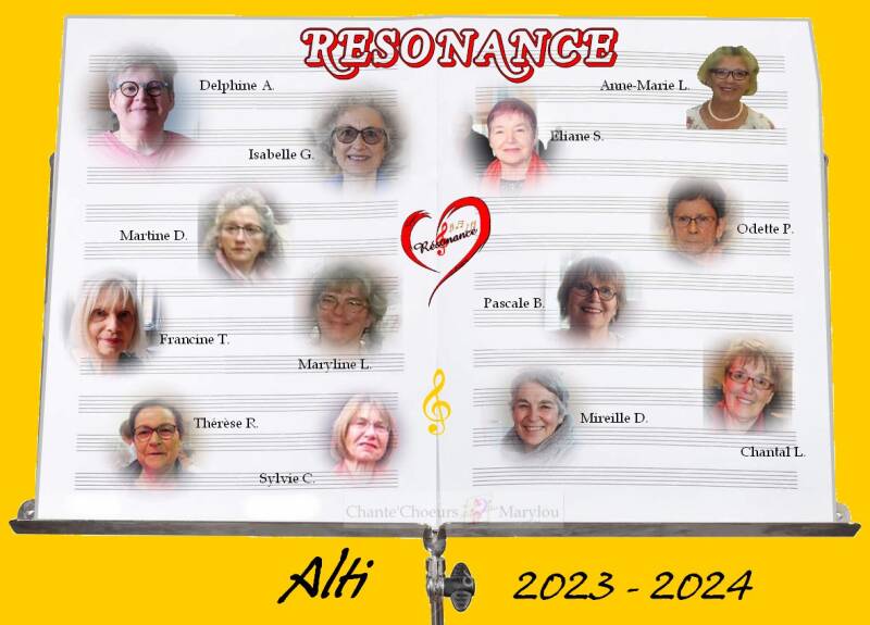 Résonance compte actuellement une quarantaine de choristes, répartis sur 4 pupitres : Soprani, Alti, Ténors, Basses.